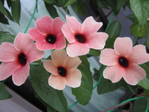 おすすめの植栽 緑のカーテン ツンベルギア ツンベルギア ツンベルギア ■キツネノマゴ科 ■つる性多年草 熱帯アフリカ原産で、暑さや乾燥に強い植物。 主にアラタ種がカーテン用に出回ります。 花色は白、黄、オレンジ色などがあります。