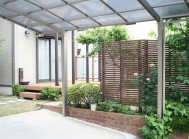 施工ギャラリー 庭周り 雑草がはびこる庭を変身 広島市安佐南区 雑草がはびこる庭を変身 広島市安佐南区 ココマテラスと樹の木デッキ(TOEX)ができました。 日除けもつけました。 リビング前の庭のところを変えます。 樹の木デッキとココマテラス(日除け付き) 境界側には目隠しフェンス(プライバシーパネルで目隠し) 和室前には木製フェンスで目隠しをしました。 和室前の木製フェンスは角材の横張りです。 立水栓はデッキの上に移設して モダンな雰囲気になりました。 ガレージからの目線も木製フェンスで 目隠しとなっています。